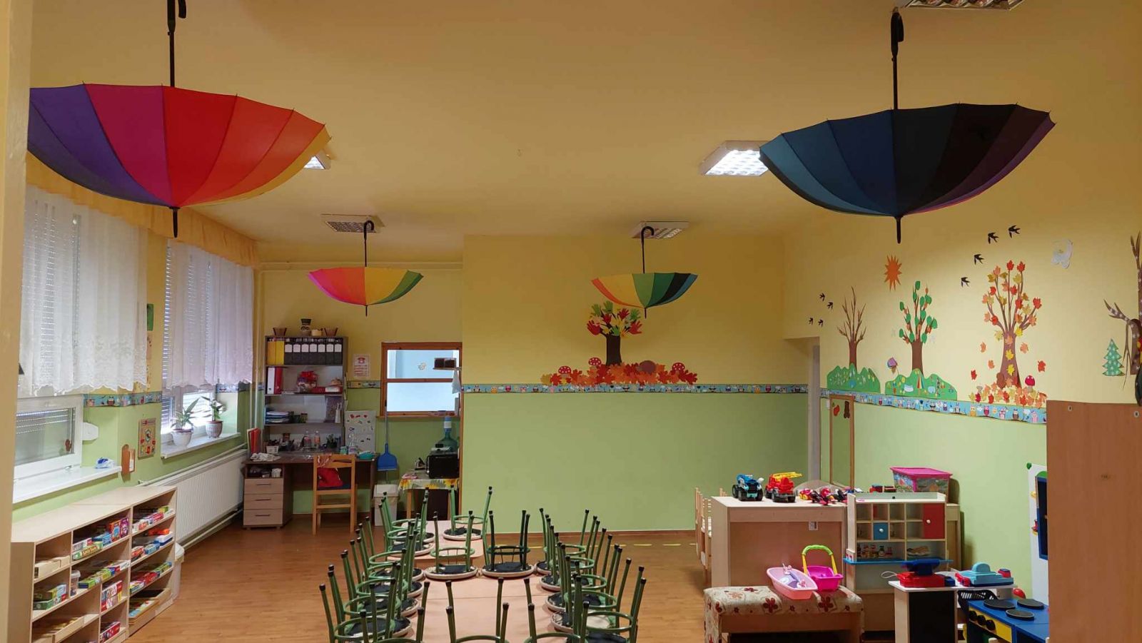 Az óvoda két vegyes életkorú csoporttal (Maci és Mókus csoport) működik, egy-egy különálló tágas csoportszobában. Az épületben légkondicionáló berendezés segíti elő a nyári melegben a kellemes alváshoz szükséges környezet előteremtését. A csoportszobák bútorzata és berendezése korszerű, évről-évre újul és szépül. A két csoport közös öltöző részt, gyermekmosdót és tornaszobát használ, ezért a napirend úgy kerül kialakításra, hogy mindkét csoport számára elegendő idő jusson ezeknek a helyiségeknek az igénybevételére.
